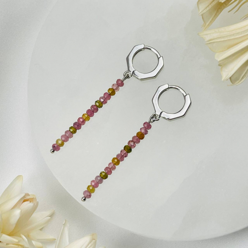 Радуга Самоцветов Серьги длинные из розового Турмалина