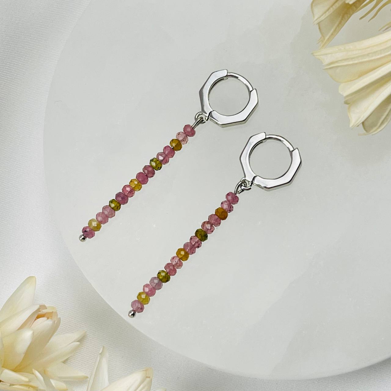 Радуга Самоцветов Серьги длинные с камнем Турмалин микс