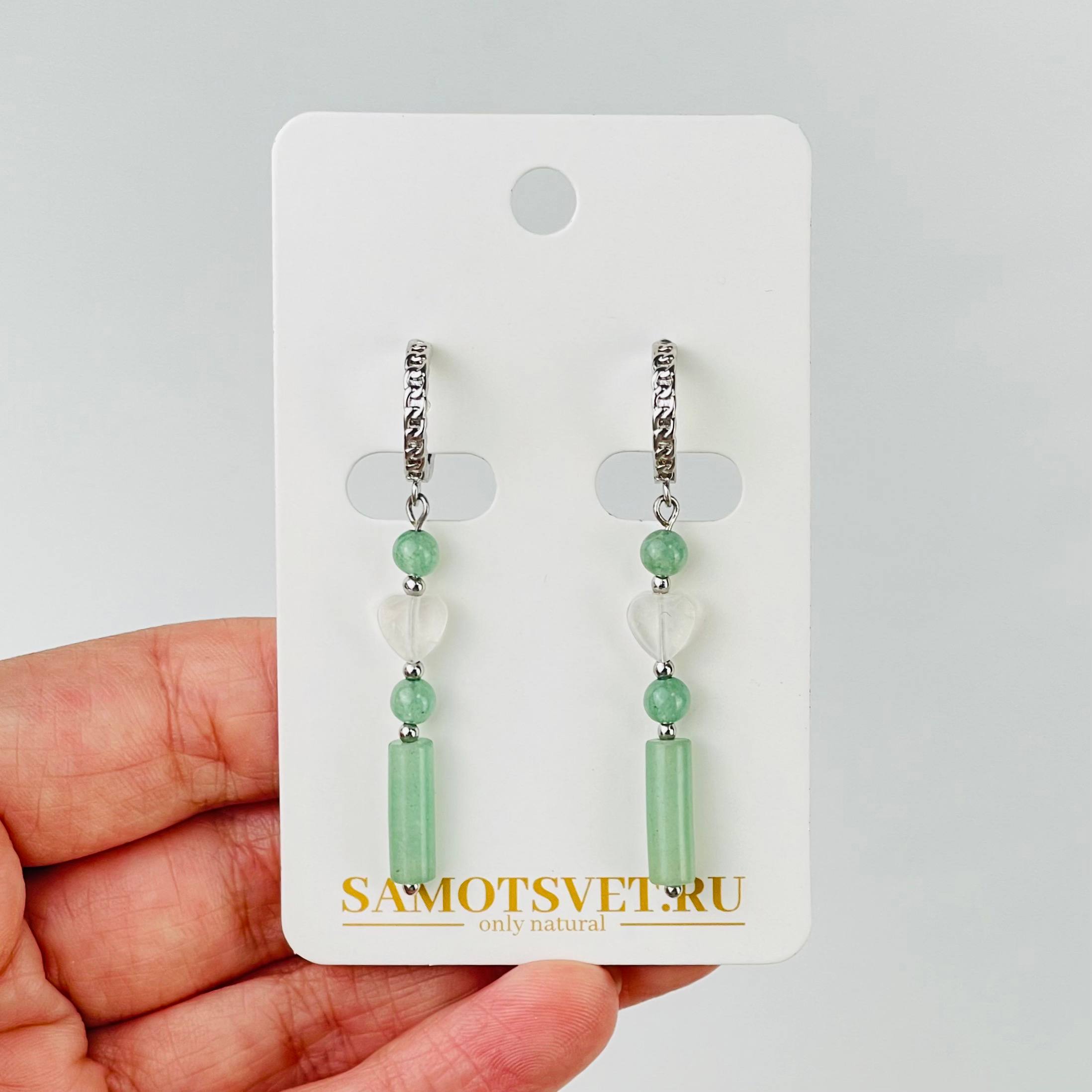 Радуга Самоцветов Серьги из Авантюрина и Горного Хрусталя