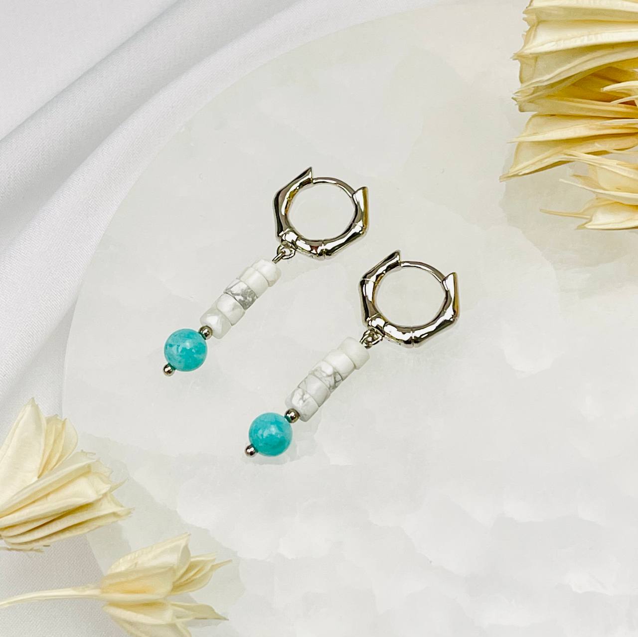 Радуга Самоцветов Серьги из Говлита и Амазонита