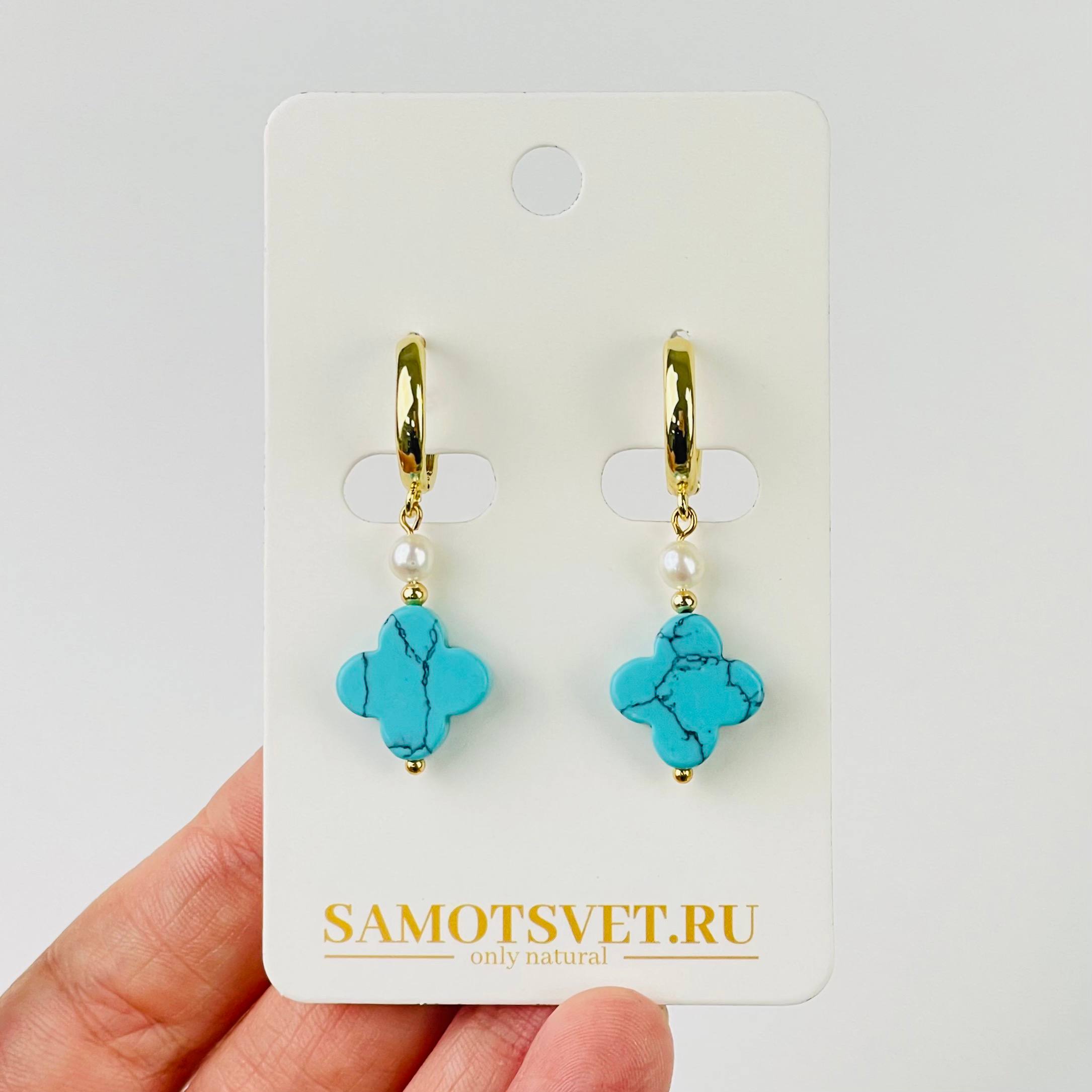 Радуга Самоцветов Серьги из Говлита тон. и Жемчуга