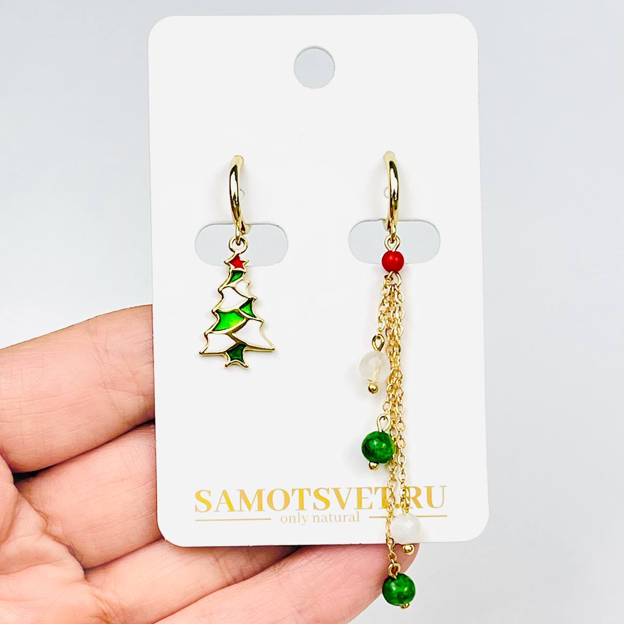 Радуга Самоцветов Серьги из Хромдиопсида,Лунного камня и Коралла