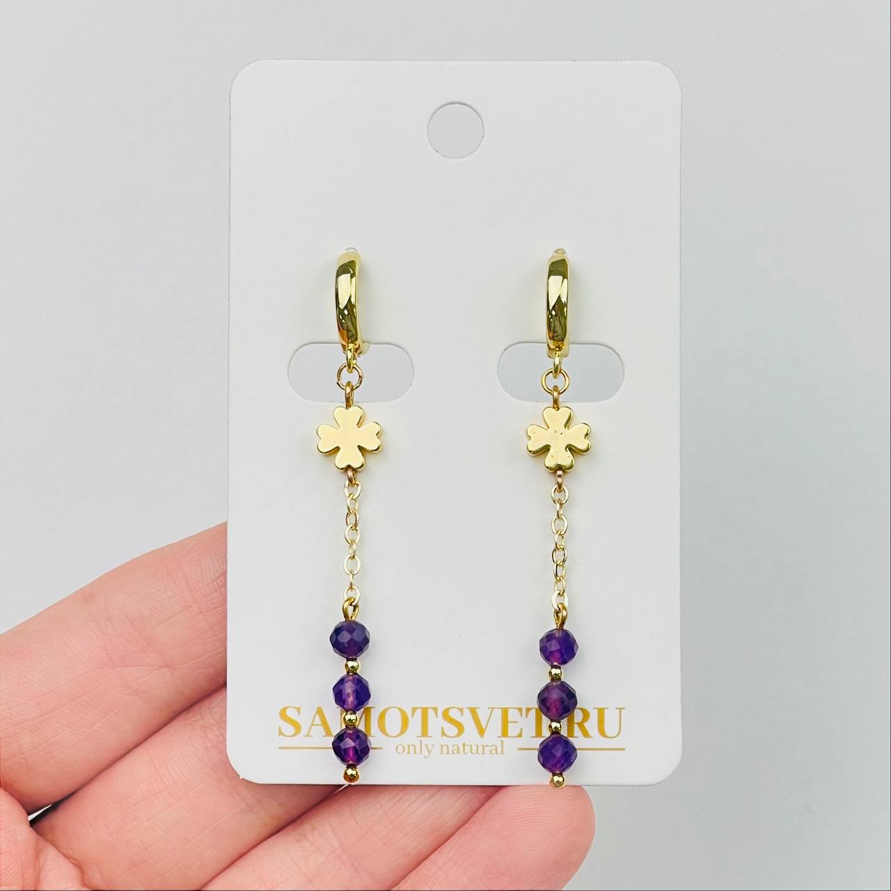 Радуга Самоцветов Серьги из камня Аметист с цепочкой