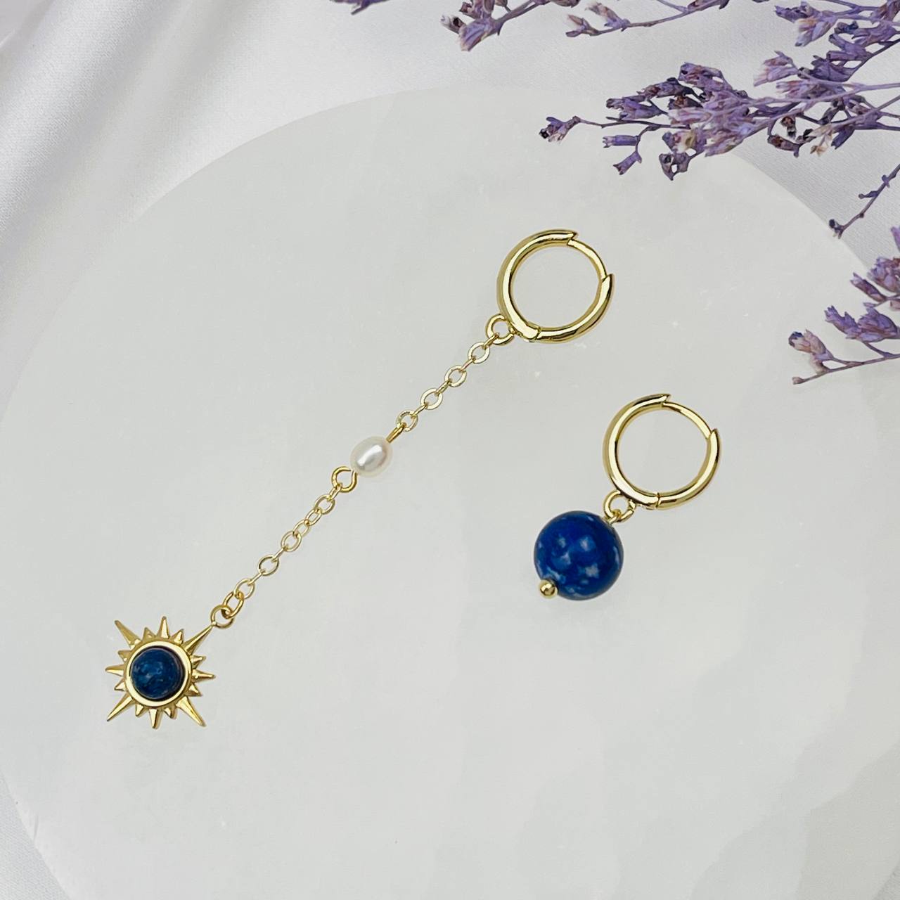 Радуга Самоцветов Серьги из Лазурита и Жемчуга