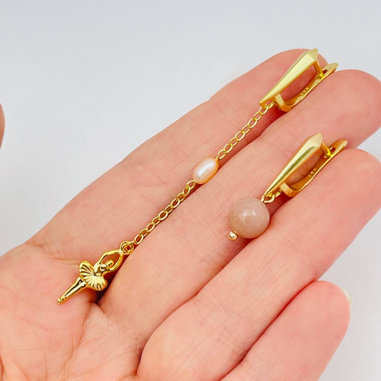 Радуга Самоцветов Серьги из Лунного камня и Жемчуга