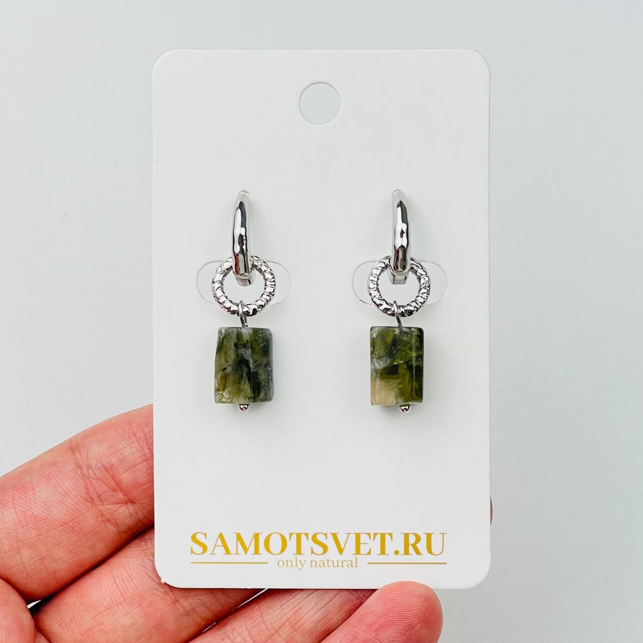 Радуга Самоцветов Серьги из Мусковита (зеленый Лепидолит)