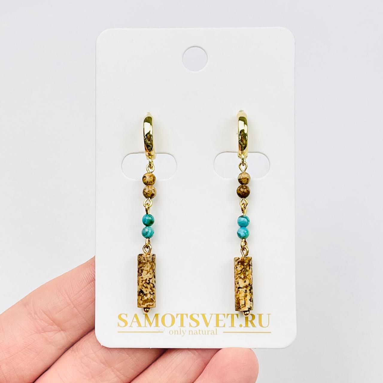 Радуга Самоцветов Серьги из песочной Яшмы и Бирюзы