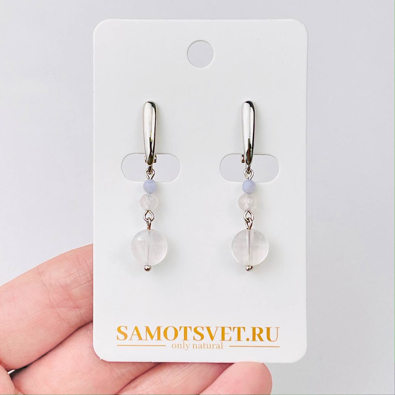 Радуга Самоцветов Серьги из Розового кварца и Голубого агата