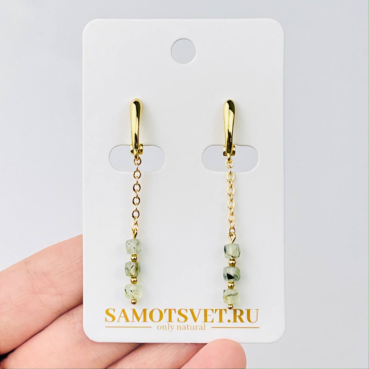 Радуга Самоцветов Серьги на цепочке из Пренита