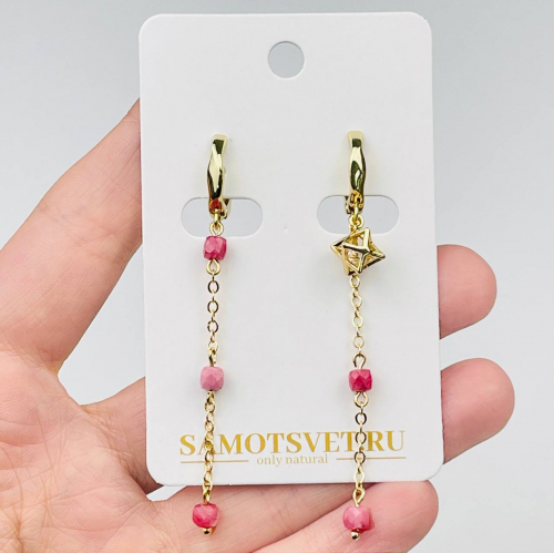 Радуга Самоцветов Серьги на цепочке с Розовым кварцем