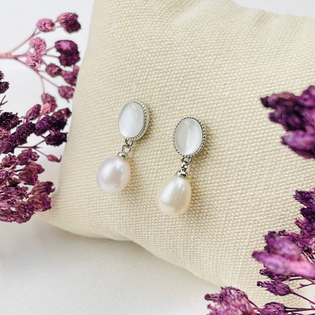Радуга Самоцветов Серьги-пусеты из речного Жемчуга и Перламутра