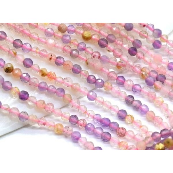 Розовый кварц с аметистом шарик гр.3мм, 39см, 145 бусин