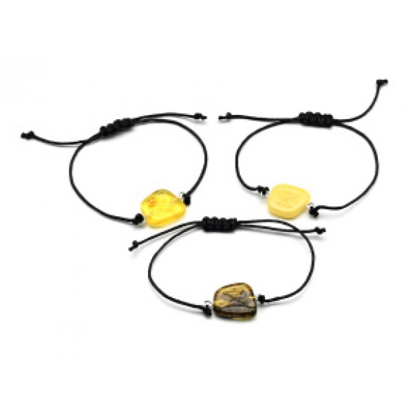 Руна Дагаз на браслете с янтарем 10*17мм на шнурке цвет медово-молочный