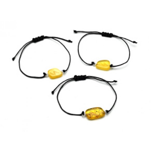 Руна Соулу на браслете с янтарем 10*17мм на шнурке цвет медово-молочный
