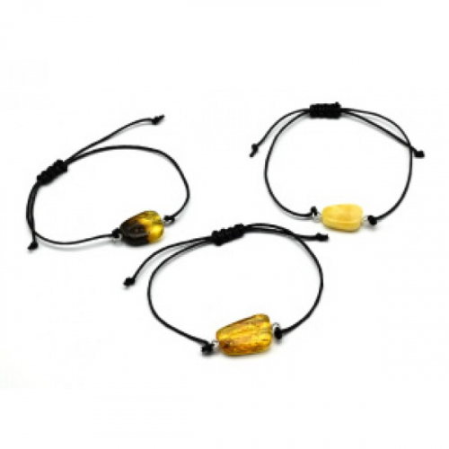 Руна Тейваз на браслете с янтарем 10*17мм на шнурке цвет медово-молочный