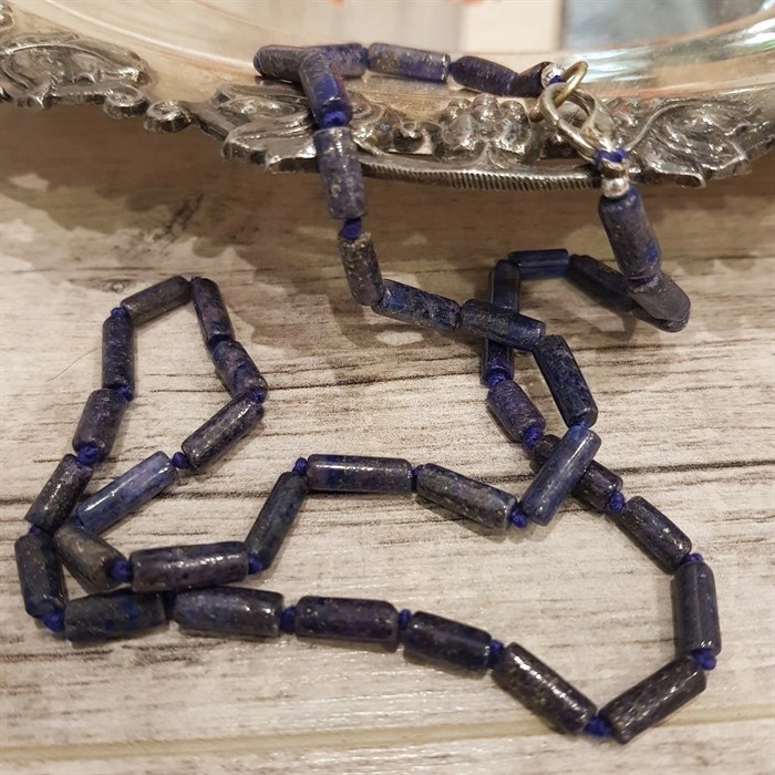 50 см, застежка. Натуральный камень. Ляпись-лазурь помогает тем, кто много времени проводит в медитациях. По мнению современных экспертов литотерапии, он способен очистить ауру владельца и в дальнейшем оберегать его от порчи и сглаза, а также может изменить судьбу в лучшую сторону. Кому подходит лазурит Считается, что лазурит стоит носить одиноким женщинам. Им камень поможет обрести семейное счастье. Если надевать кольцо с лазуритом, то любимый человек будет всегда верен.