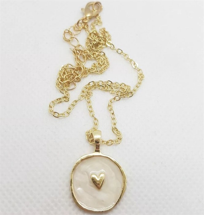 Кулон Белое Сердце с эмалью на цепочке цвет золото