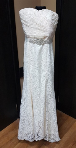 Совершенно новое, в упаковке. Сзади шнуровка, шлейф. Цвет Айкрю.