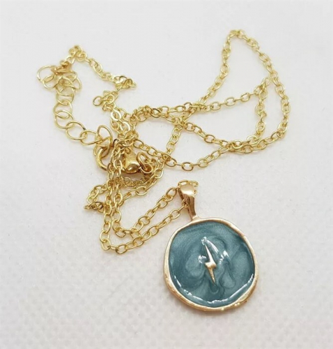 Подвеска с эмалью на цепочке Голубая Молния