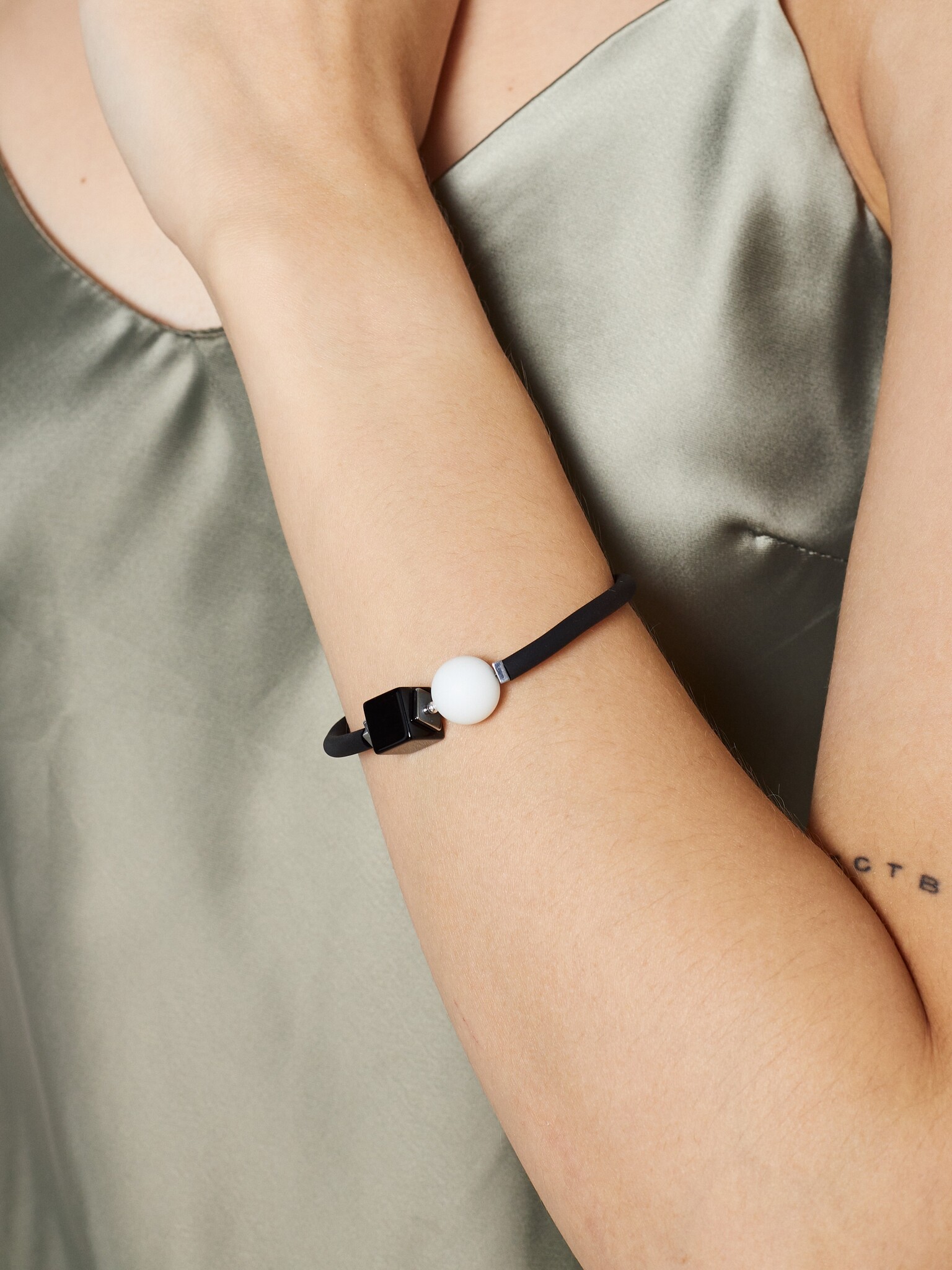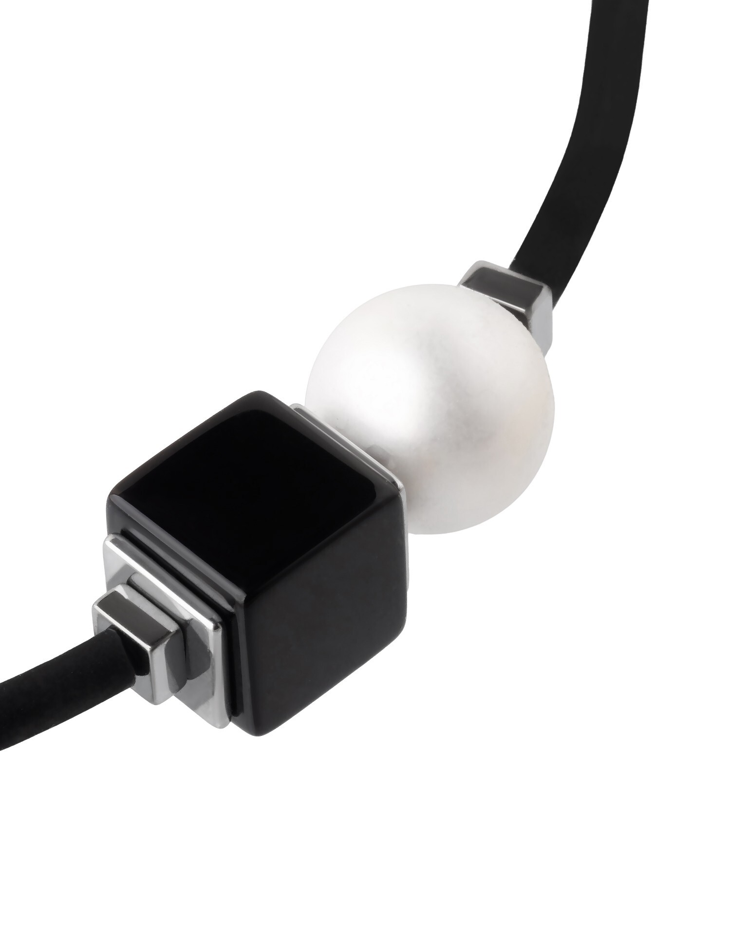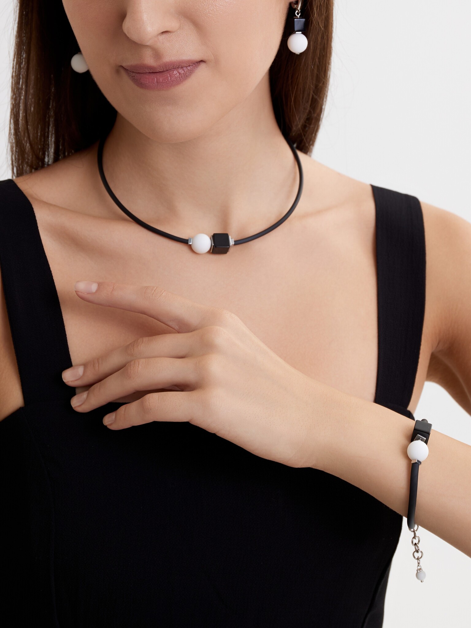 Агат, каучук, гематит,ювелирный сплав. Гальваническое покрытие: родий.