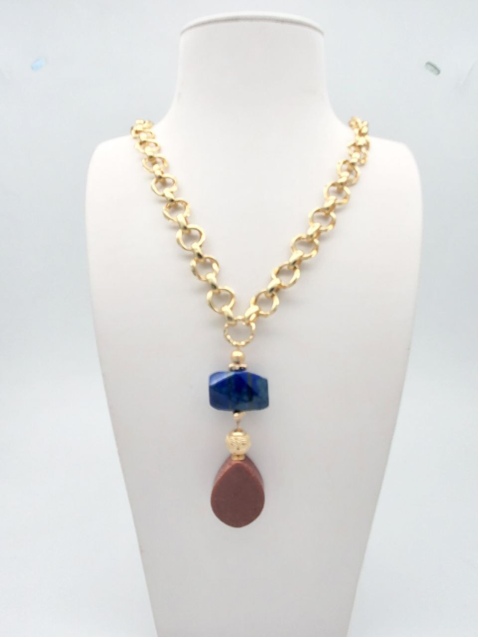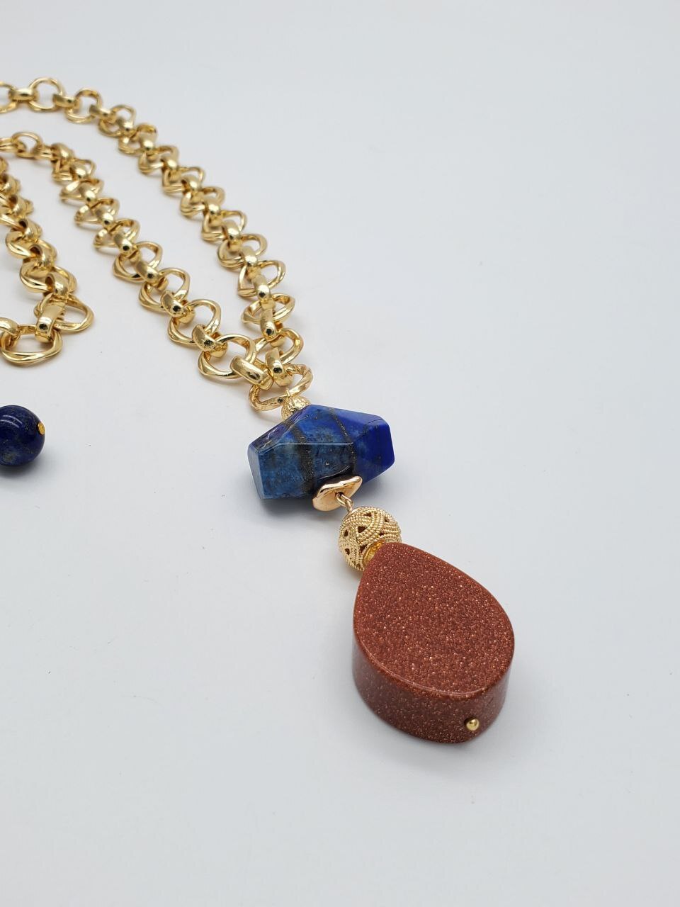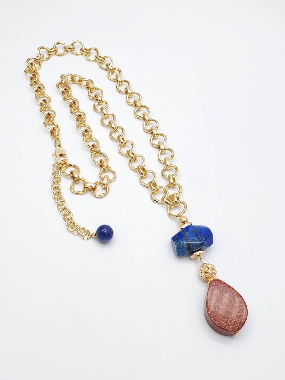 Размер: Длина колье 63 +7 см. Лазурит галтовка 18*22 мм, лазурит 10 мм, авантюрин 20*22 мм