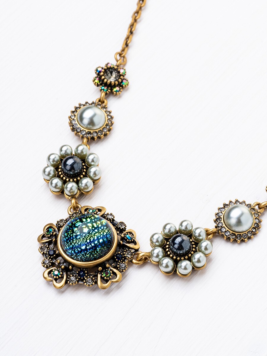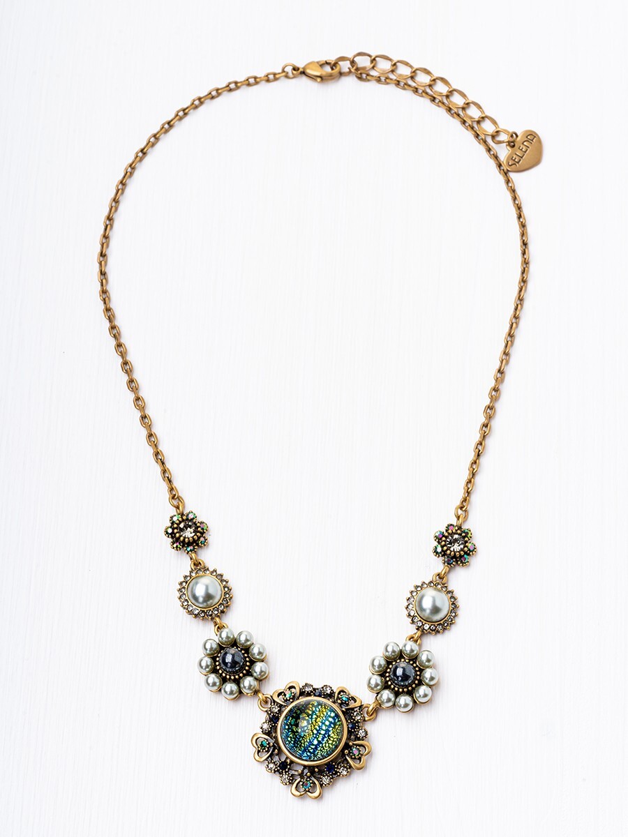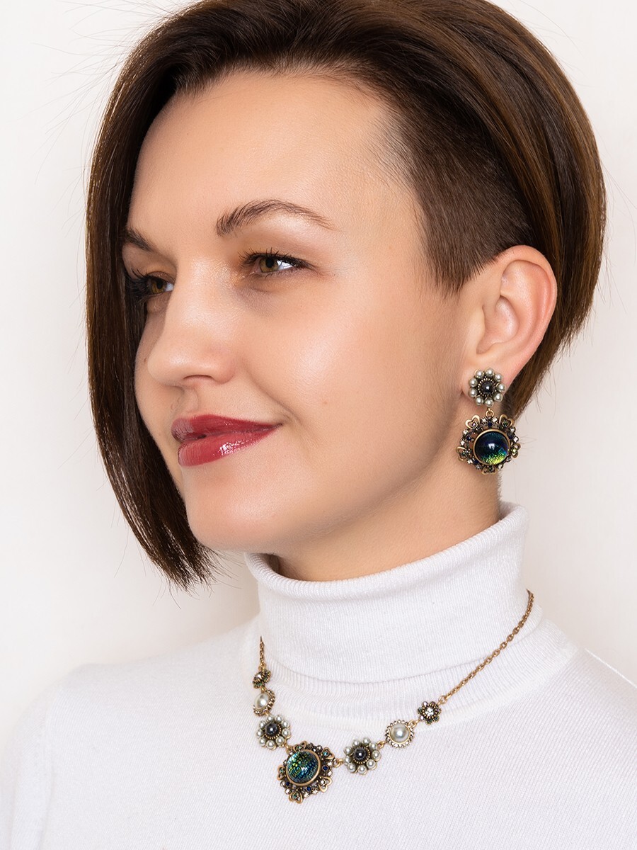 Ювелирная смола, кристаллы Preciosa, искусственный жемчуг, латунь. Гальваническое покрытие: золото.