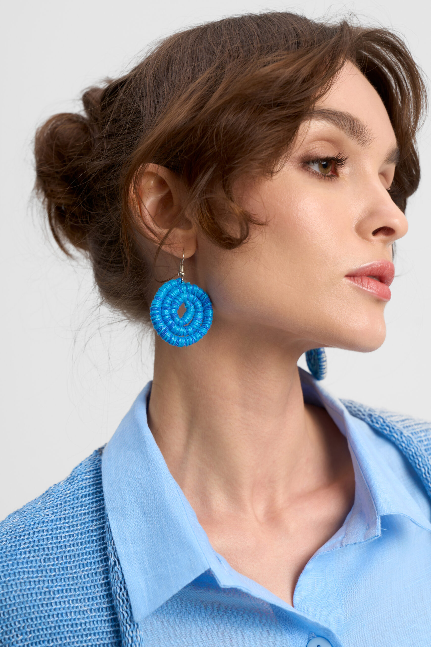 Серьги – подвески текстильные. Диаметр 4см. Состав лён, вискоза.