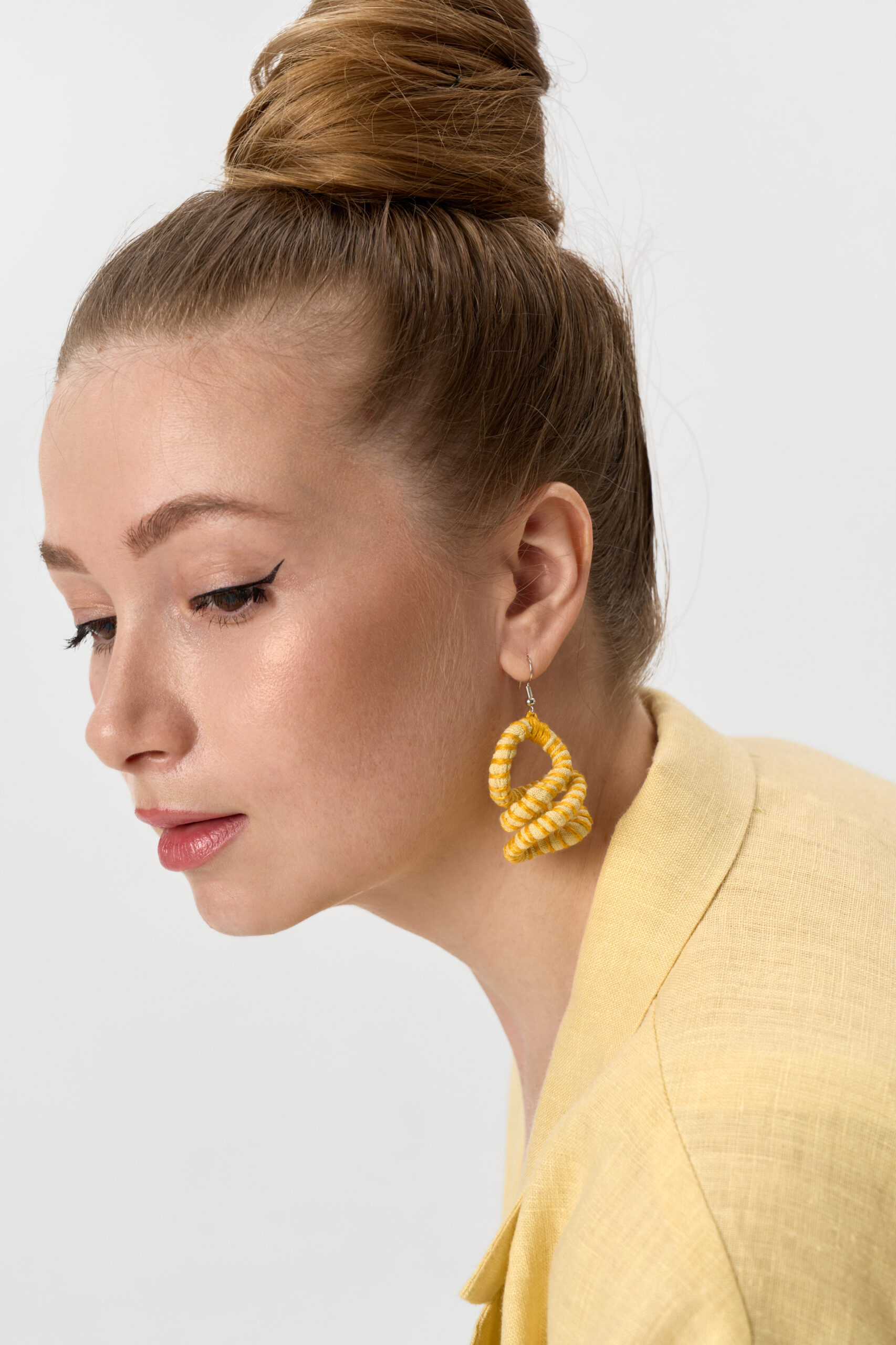 Серьги – подвески текстильные каркасные. Длина формы 6см. Состав лен, вискоза.