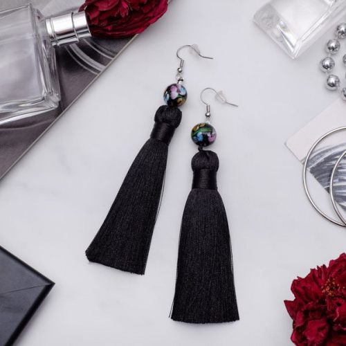 Серьги ассорти "Кисти" муранское стекло, цвет чёрный, L кисти 8,5 см