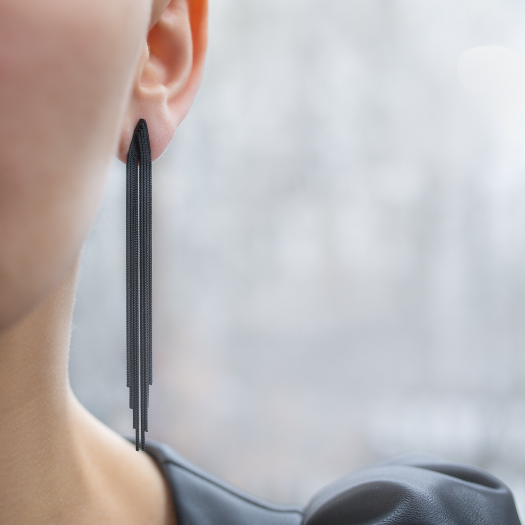 Ювелирный сплав, родиевое покрытие, черное матовое покрытие.