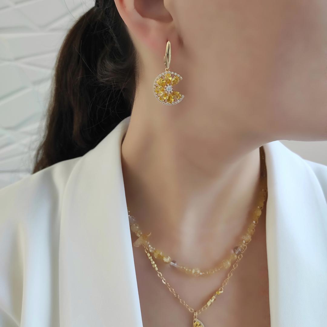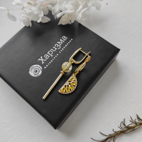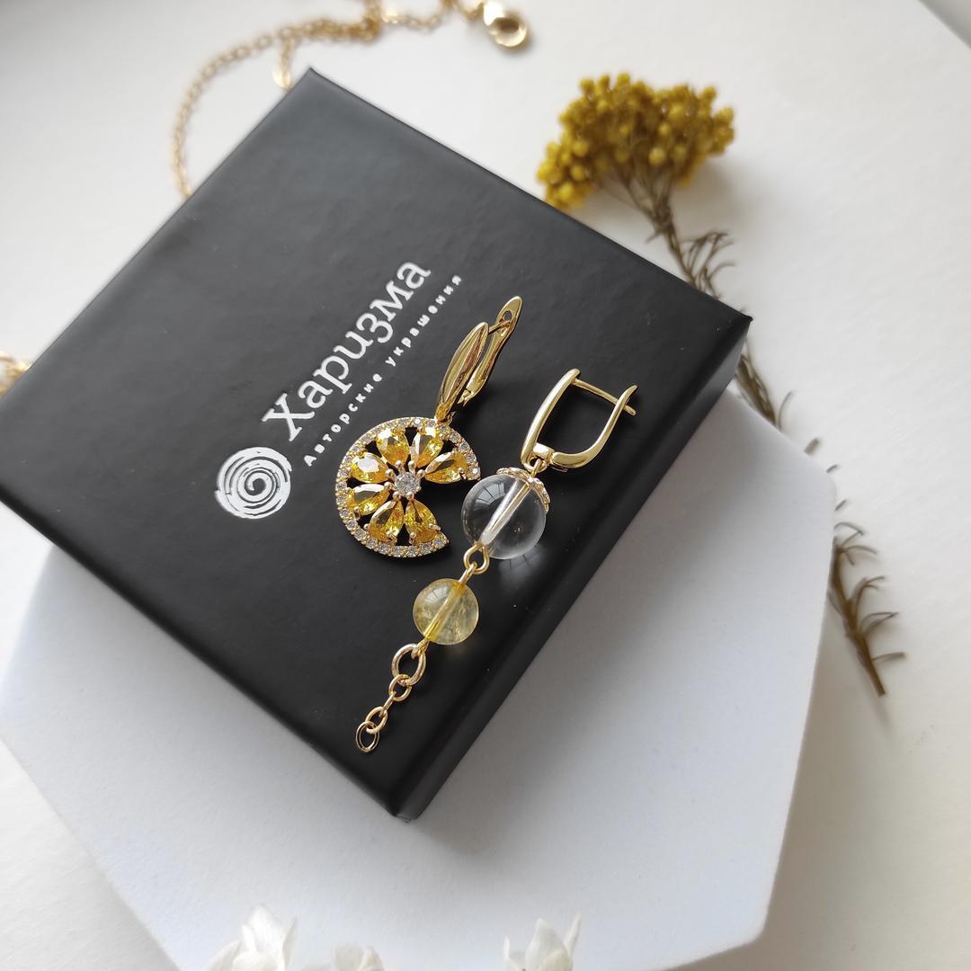 Серьги "Долька лимона", цитрином и горным хрусталем