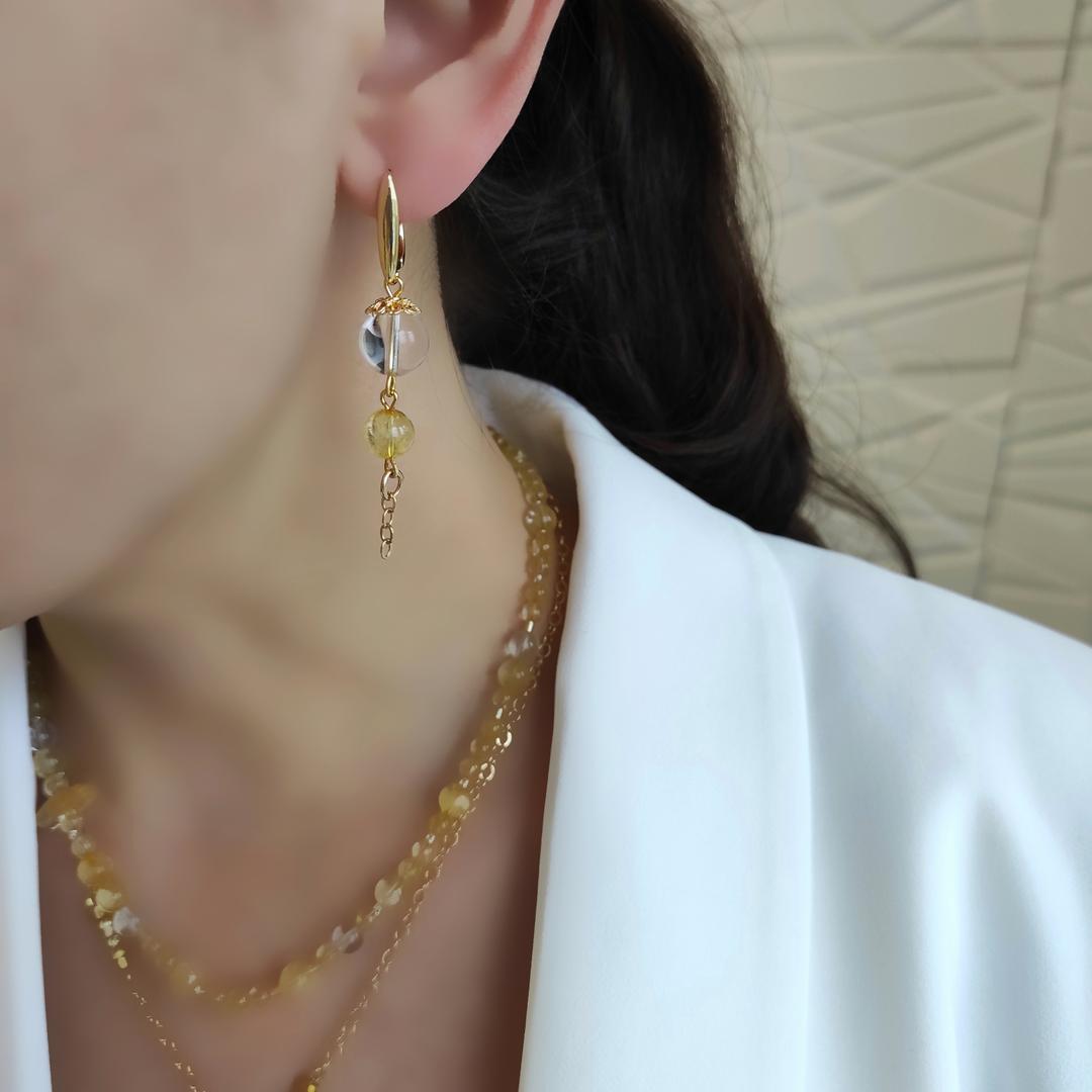 Использованы натуральный цитрин 8мм, горный хрусталь 10мм.