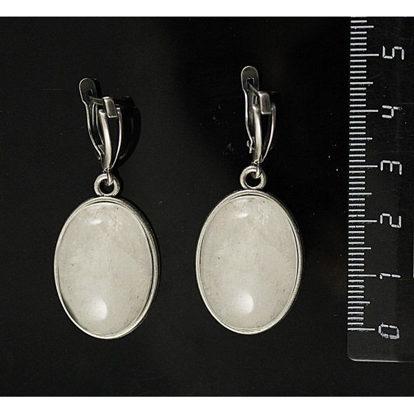 Серьги горный хрусталь простой овал 25х18мм, швензы посеребрение