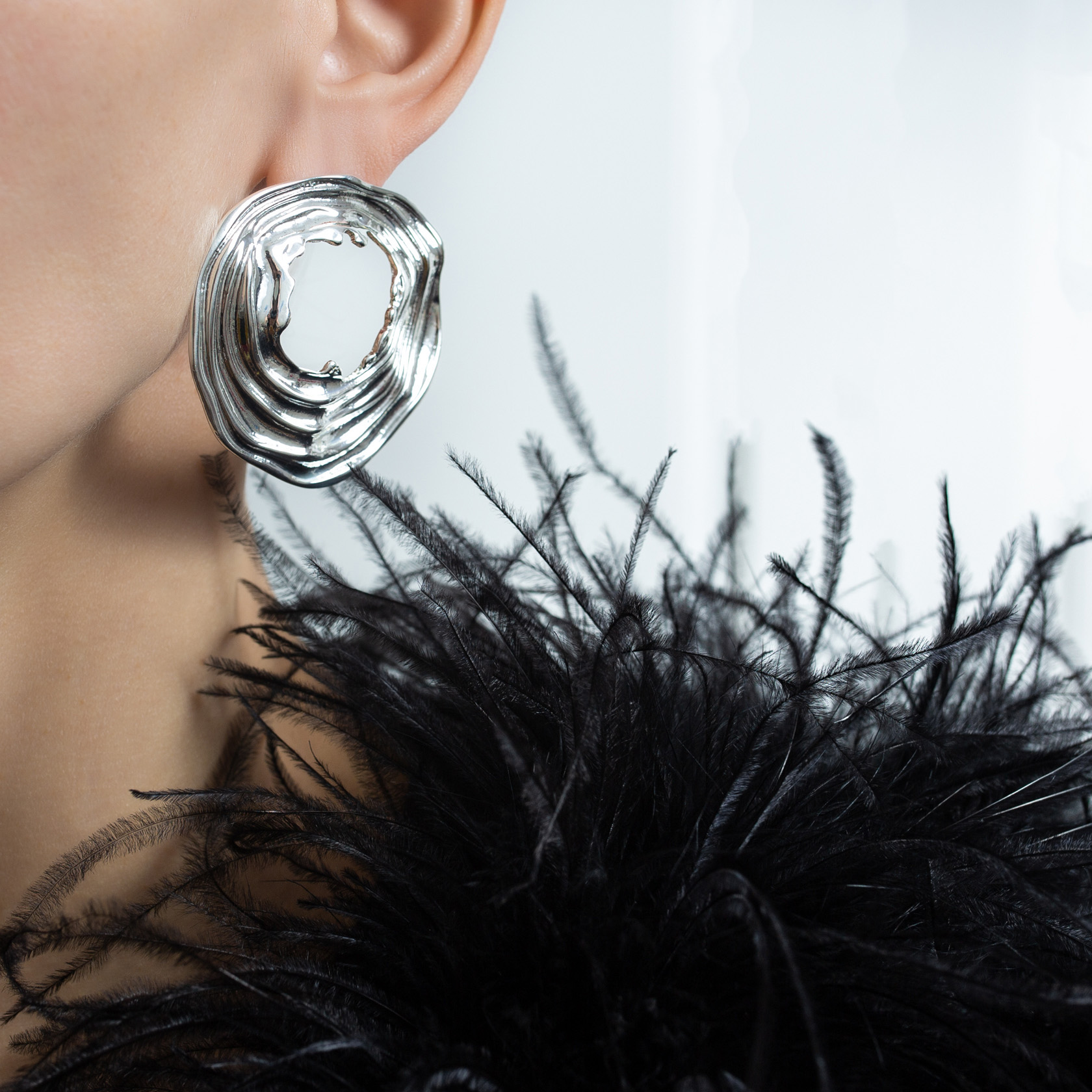 Крупный размер делает серьги самостоятельным акцентом в образе. Они хорошо смотрятся с лаконичной одеждой, открытой линией плеч и минималистичными силуэтами, где форма украшения выходит на первый план.