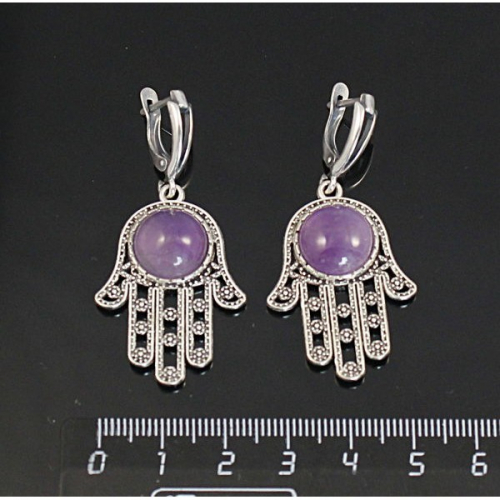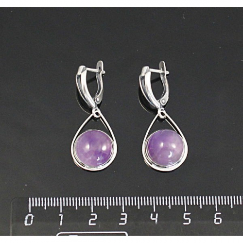 Серьги из аметиста, круг 12мм, "капелька", швензы посеребрение