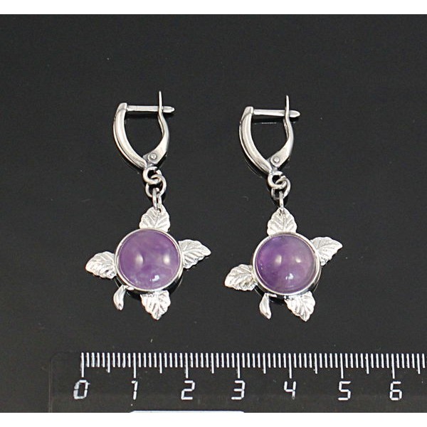 Серьги из аметиста, круг 12мм, "ягодка", швензы посеребрение