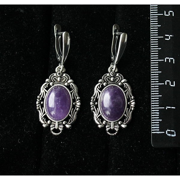 Серьги из аметиста, "принцесса", овал 14х10мм, швензы посеребрение