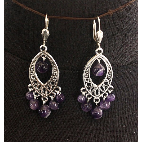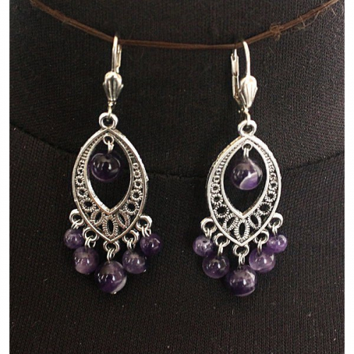 Серьги из аметиста, шарик 4-8мм, коннектор "глаз"