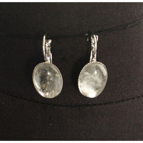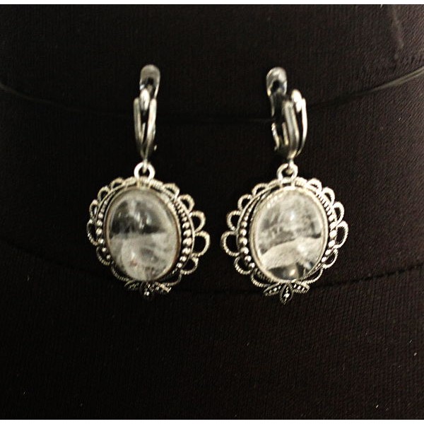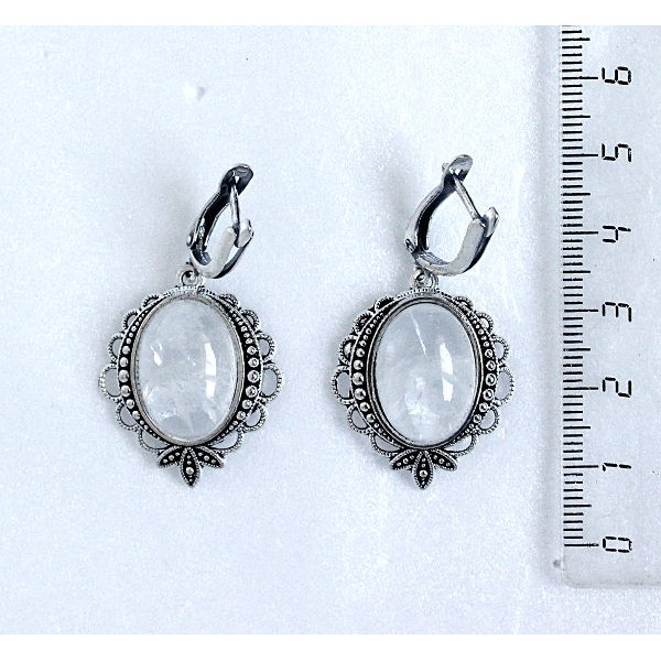 Серьги из горного хрусталя (не полностью прозрачный) "трилистник", овал 18х13мм швензы посеребрение
