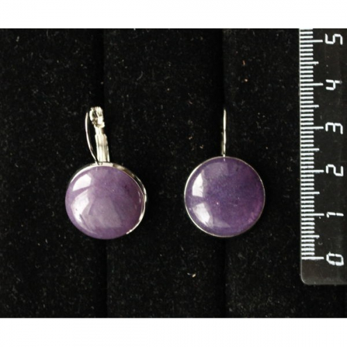 Серьги из кварца тонированного, цвет аметист, круг 18мм, швензы посеребрение