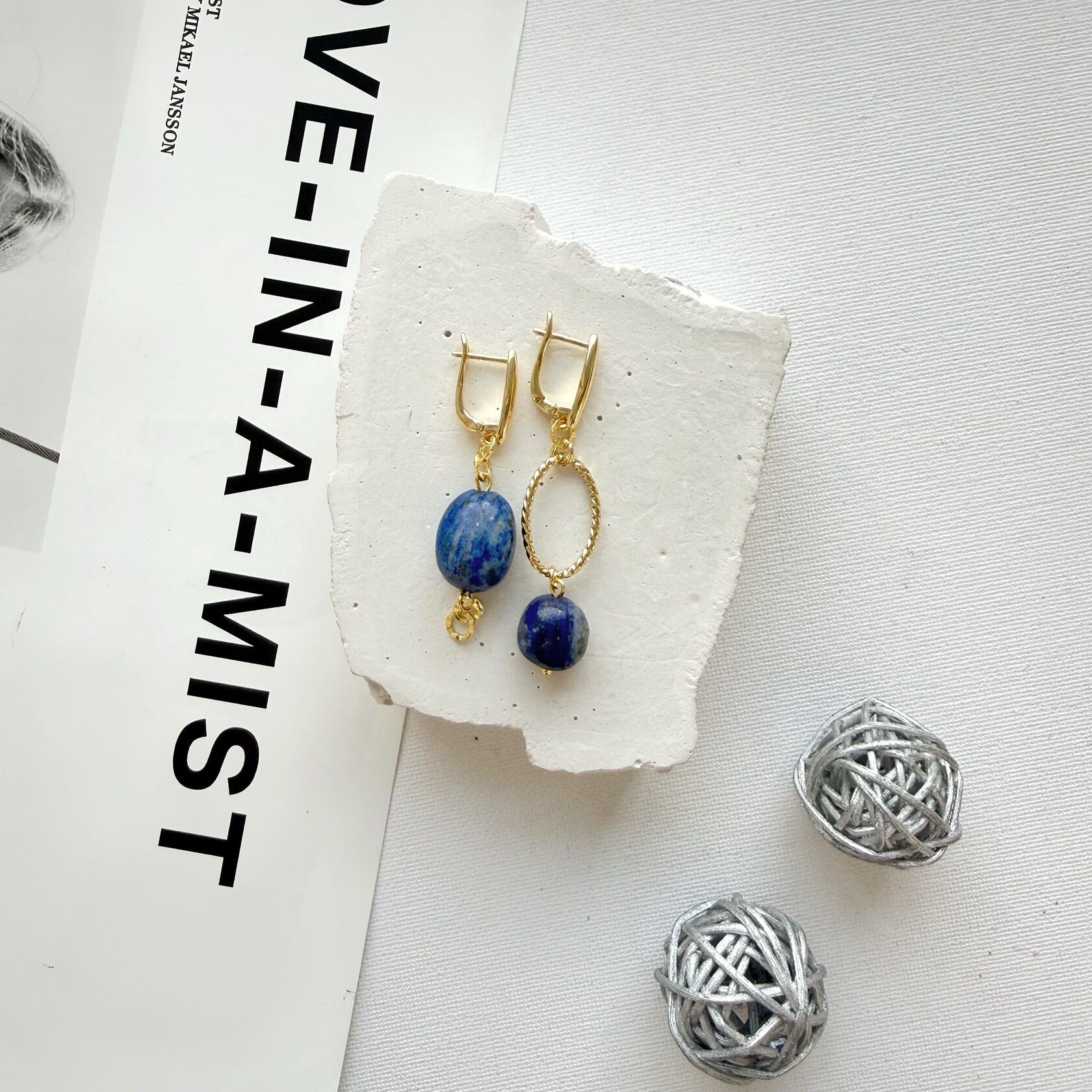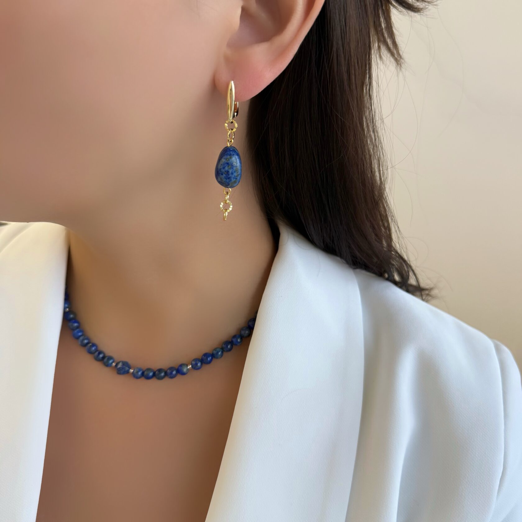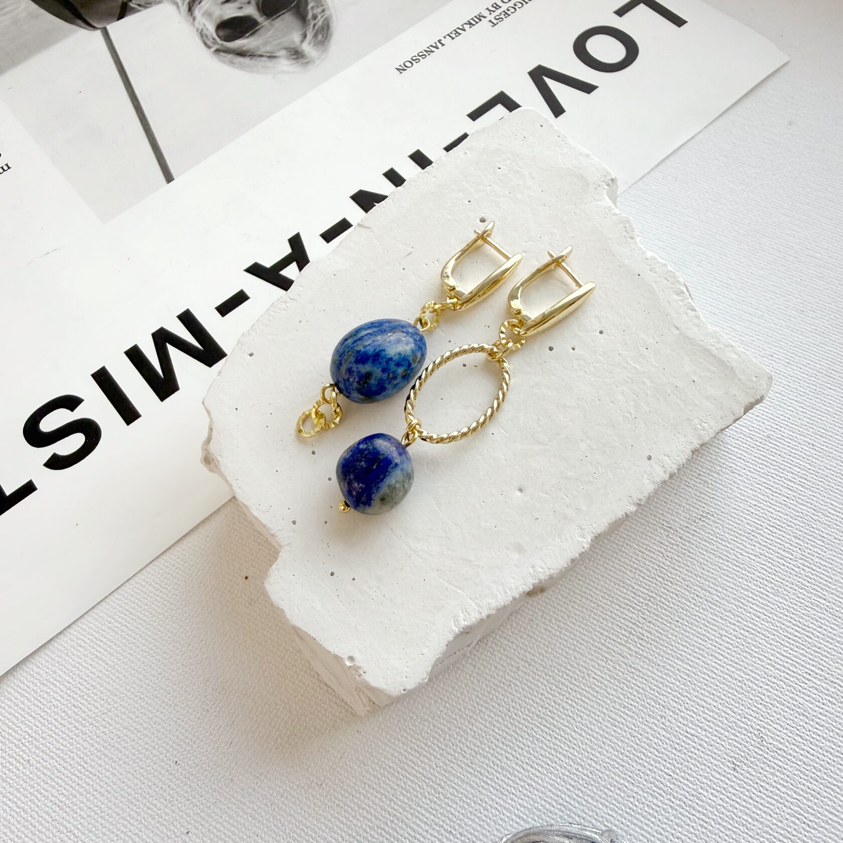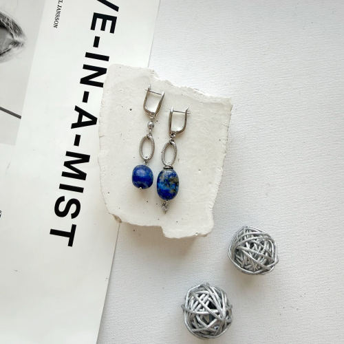 Асимметричные серьги. Камень - натуральный лазурит высокого качества.