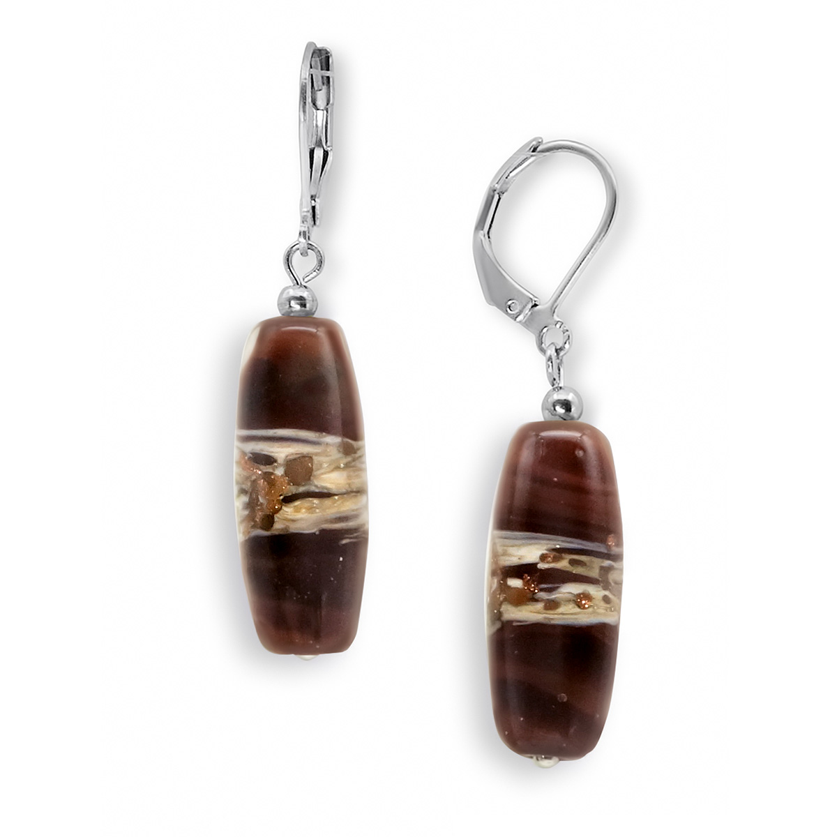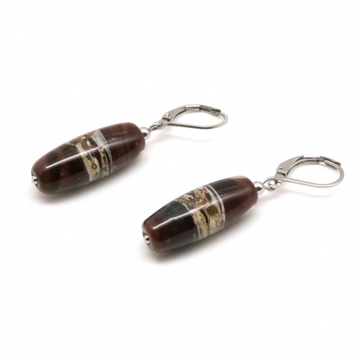 Серьги изготовлены из муранского стекла и гипоаллергенной ювелирной стали, что очень важно для людей с чувствительной кожей. Металл не темнеет и не подвергается воздействиям окружающей среды, надолго обеспечивая красивый внешний вид изделия. Длина серег - 4,5 см. Длина стеклянной бусины - 2,5 см.  Вес обеих серег - 8 гр.