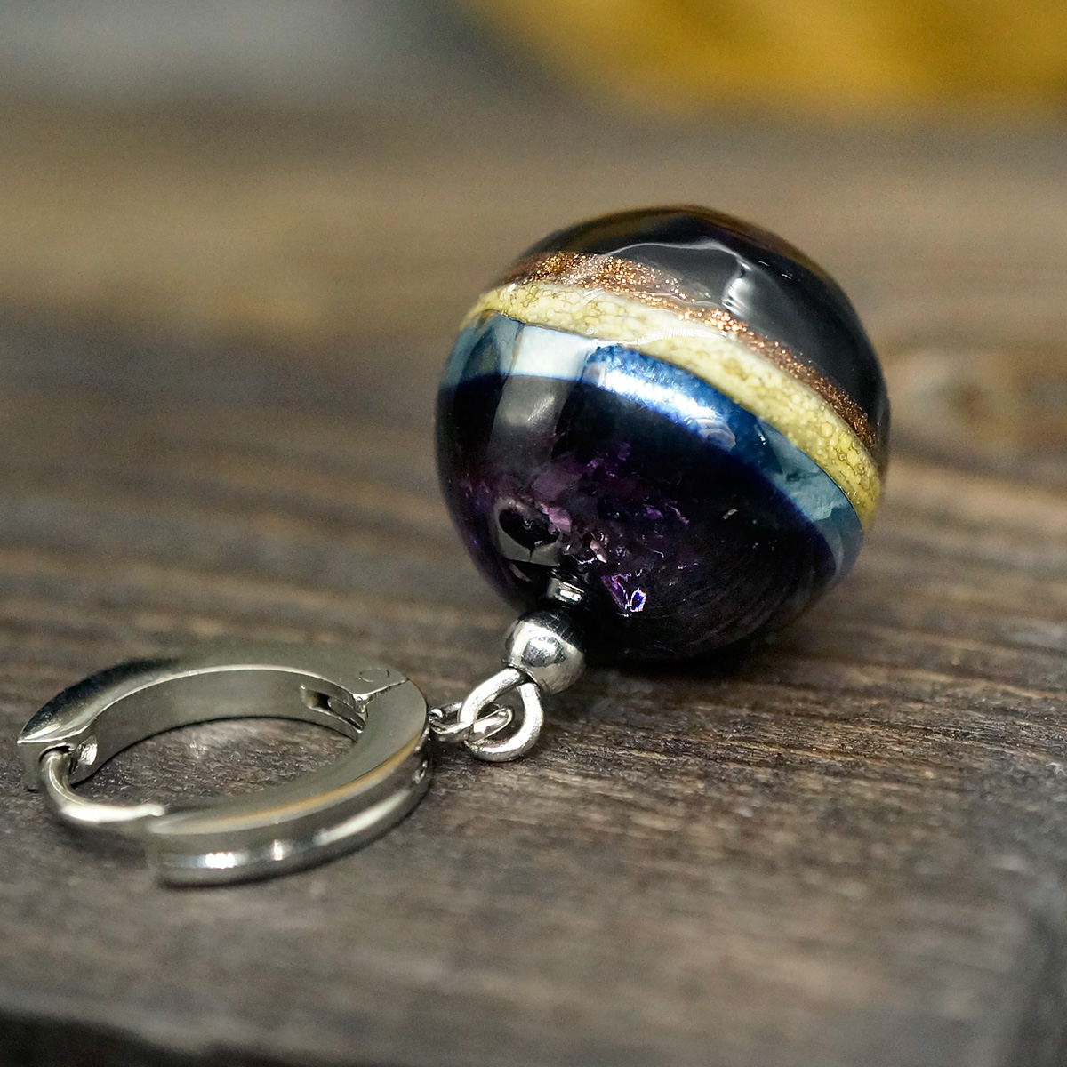 Серьги изготовлены из муранского стекла и гипоаллергенной ювелирной стали, что очень важно для людей с чувствительной кожей. Металл не темнеет и не подвергается воздействиям окружающей среды, надолго обеспечивая красивый внешний вид изделия. Длина серег - 4 см. Диаметр стеклянного шарика - 1,5 см. Вес - 14 гр.