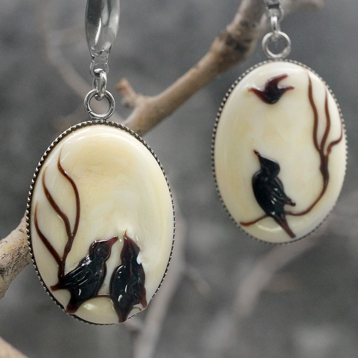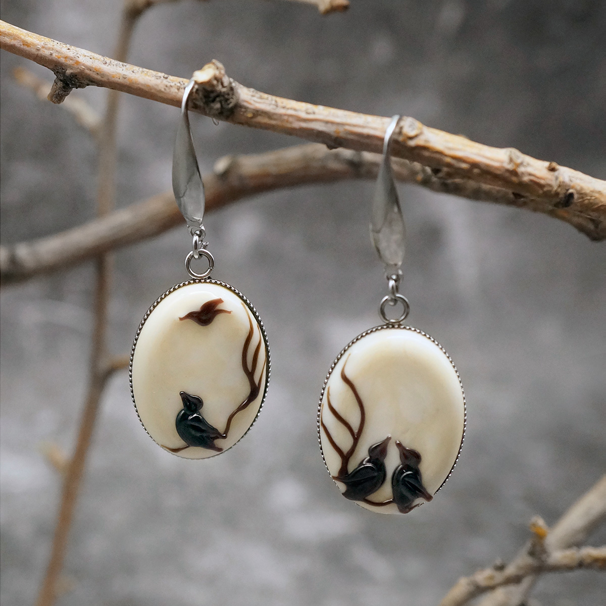 Birds - удивительно нежная и романтичная коллекция. Основным акцентом коллекции являются стеклянные элементы оттенка топленого молока с изображением птиц, сидящих на извилистых ветвях.