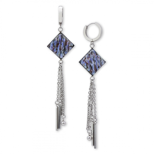Серьги изготовлены из муранского стекла и гипоаллергенной ювелирной стали, что очень важно для людей с чувствительной кожей. Металл не темнеет и не подвергается воздействиям окружающей среды, надолго обеспечивая красивый внешний вид изделия. Длина серег - 5 см. Размер бол. стеклянного элемента 1,6x1,6 см.  Вес обеих серег - 11 гр.