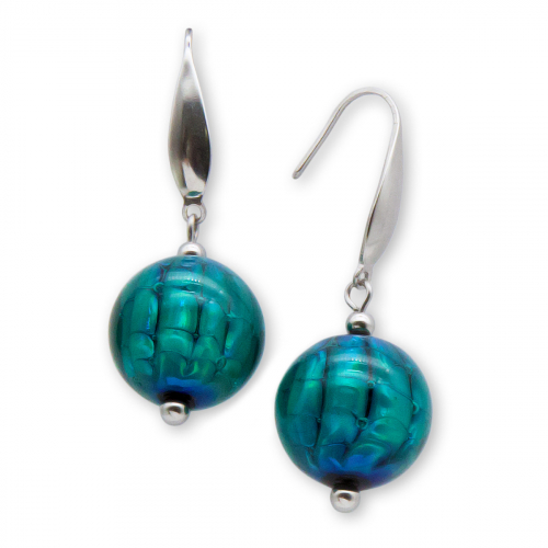Серьги изготовлены из муранского стекла и гипоаллергенной ювелирной стали, что очень важно для людей с чувствительной кожей. Металл не темнеет и не подвергается воздействиям окружающей среды, надолго обеспечивая красивый внешний вид изделия. Длина серег - 7,5 см. Размер стеклянного кубика - 1,2х1,2 см.  Диаметр стеклянного шарика - 1 см. Вес - 10 гр.