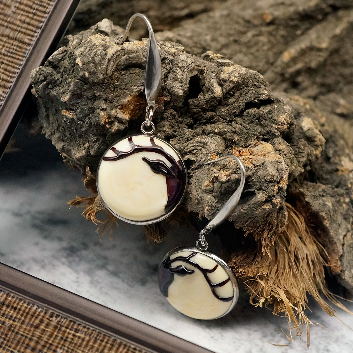 Коллекция Deer. Серьги круглые с рисунком оленя.