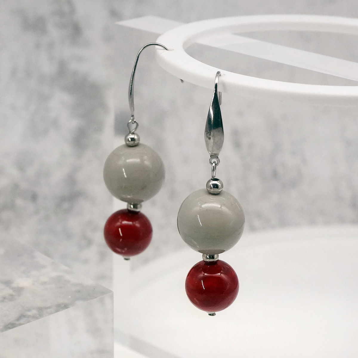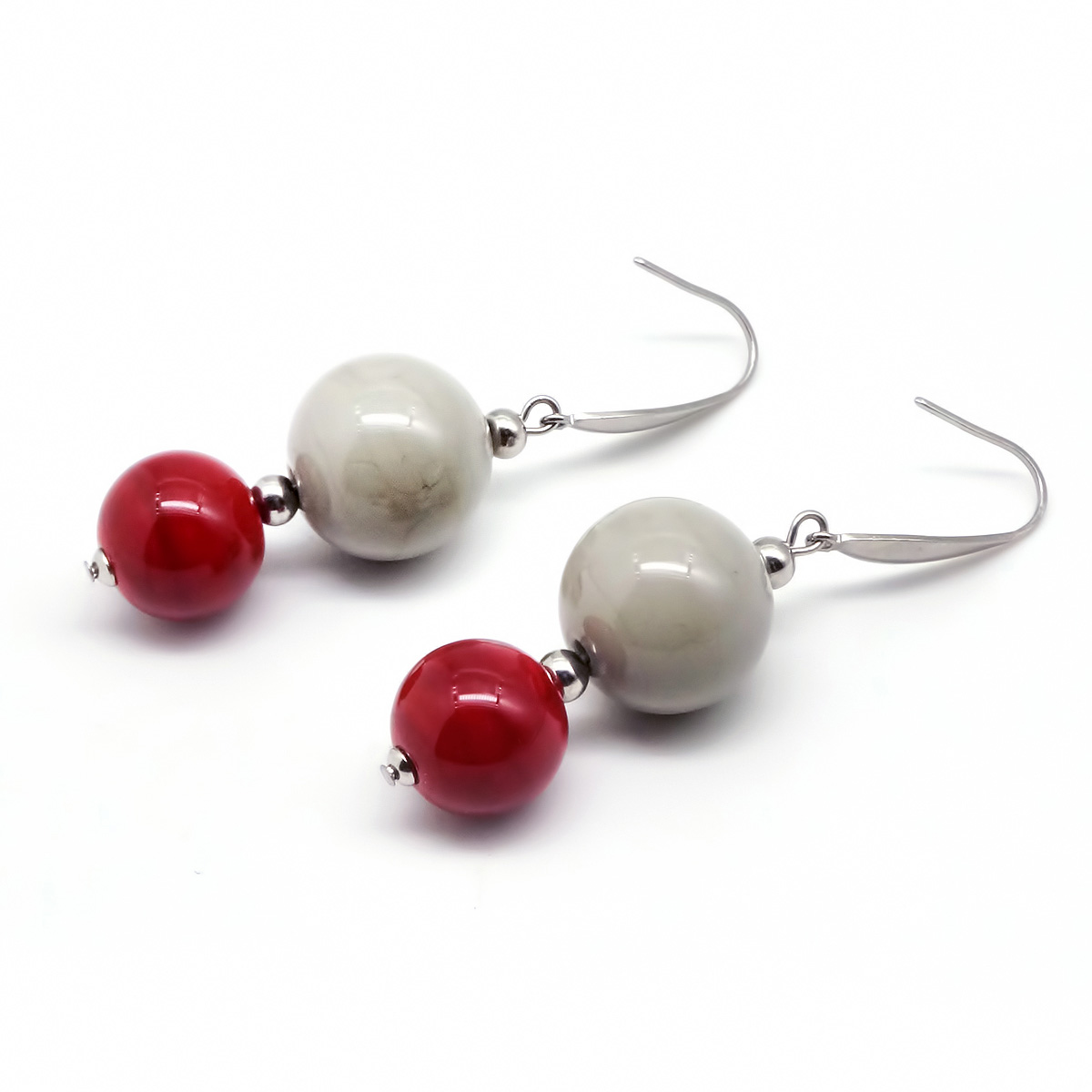 Серьги изготовлены из муранского стекла и гипоаллергенной ювелирной стали, что очень важно для людей с чувствительной кожей. Металл не темнеет и не подвергается воздействиям окружающей среды, надолго обеспечивая красивый внешний вид изделия. Длина серег - 5,5 см. Диаметр стеклянного шарика - 1,2 и 1,5 см.  Вес обеих серег - 17 гр.