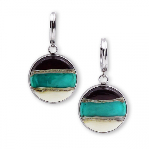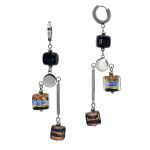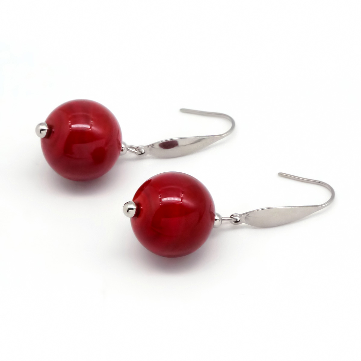 Серьги изготовлены из муранского стекла и гипоаллергенной ювелирной стали, что очень важно для людей с чувствительной кожей. Металл не темнеет и не подвергается воздействиям окружающей среды, надолго обеспечивая красивый внешний вид изделия. Длина серег - 4 см. Диаметр стеклянного шарика - 1,5 см.  Вес обеих серег - 11 гр.