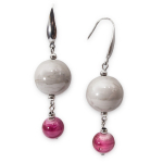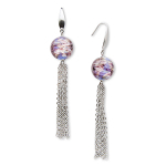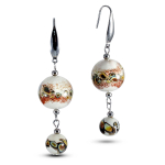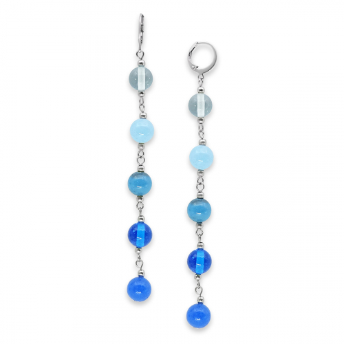 Серьги изготовлены из муранского стекла и гипоаллергенной ювелирной стали, что очень важно для людей с чувствительной кожей. Металл не темнеет и не подвергается воздействиям окружающей среды, надолго обеспечивая красивый внешний вид изделия. Диаметр стеклянных бусин - 0,8 см. Длина серег - 10 см. Вес обеих серег - 14 гр.